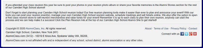 Right from the bottom of the home page of the “Camden Alumni” site: